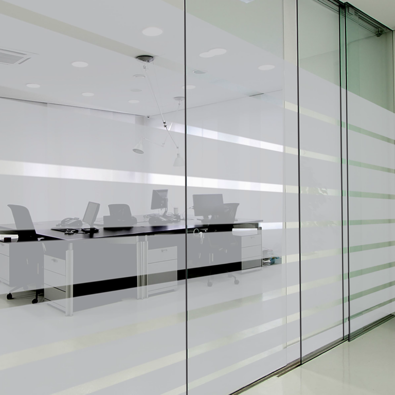 GF 790AE – Print-N-Privacy 3.0 mil Polymeric Etched Glass Vinyl (Light) – 7 yr w/ clear solvent permanent adhesive / Air Egress