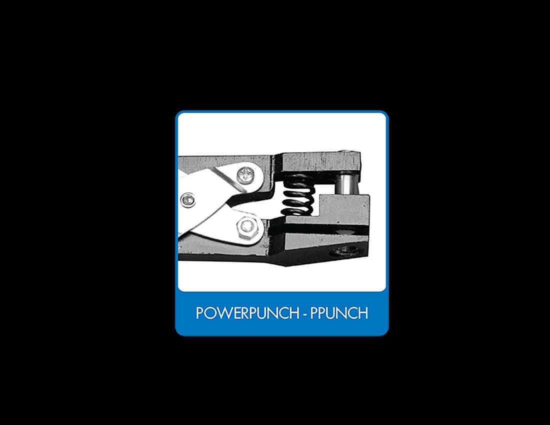*Cuts cleanly through tabs, *PowerTape® and banner media.